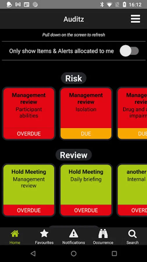 The Auditz app supports the Auditz online health and safety software platform. The app features include: