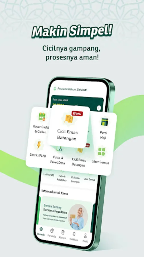 Digital Sharia Pawnshop is an application-based Pawnshop service that helps you perform Sharia Pawnshop transactions through your smartphone.