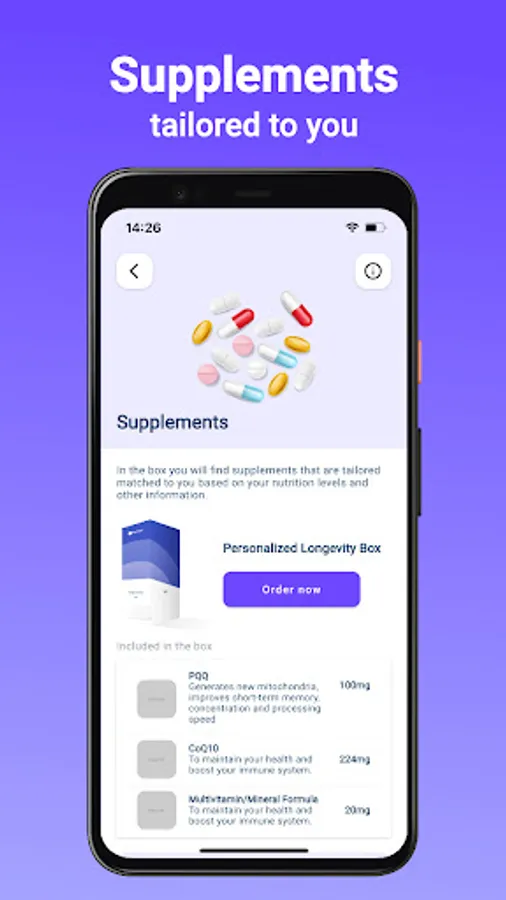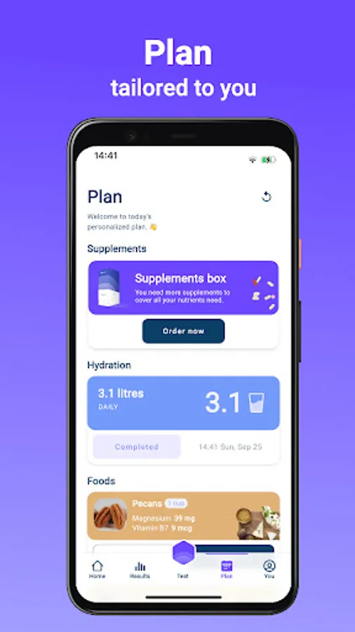 Your unique list of results, supplements, foods, fastings and hydration tailored to your body.