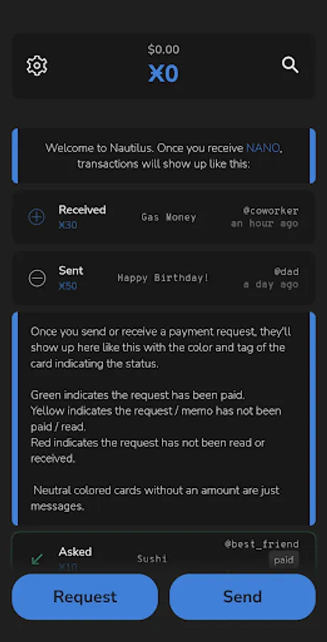 - Share your personal account address with a personalized QR card.