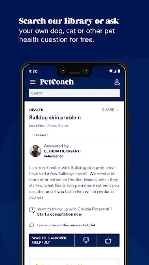 PetCoach is the leading source of online veterinary advice. Ask questions about your pet's health, nutrition, behavior, or any other topic, and obtain trusted answers from verified veterinarians and other pet experts.