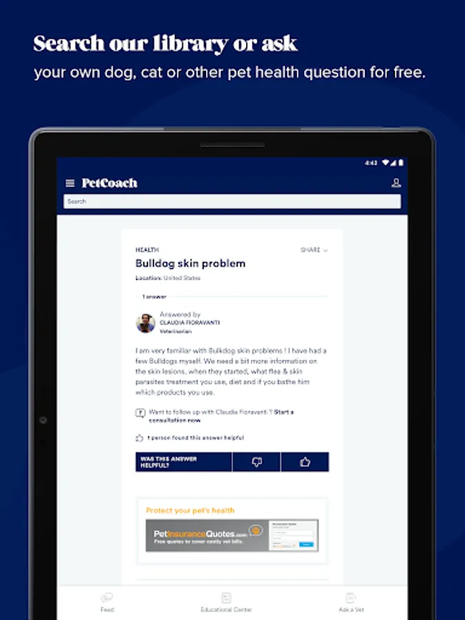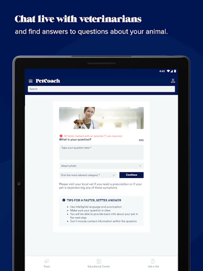 - Clear all your doubts: Learn how to potty train your puppy, stop your cat's itching and scratching, obtain a second opinion about your dog's nutrition, discover how to prevent fleas and ticks...you name it!