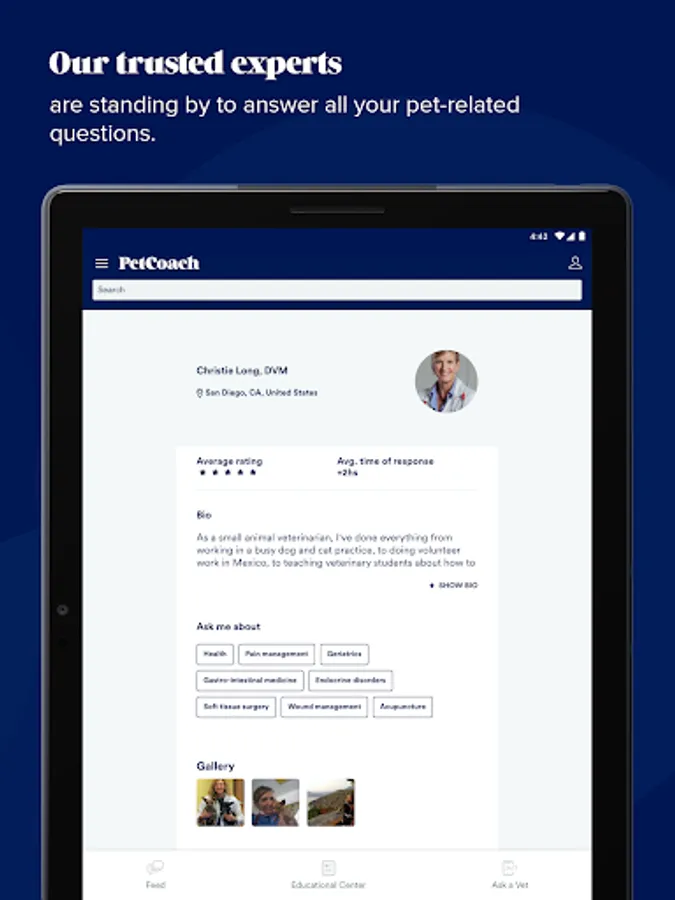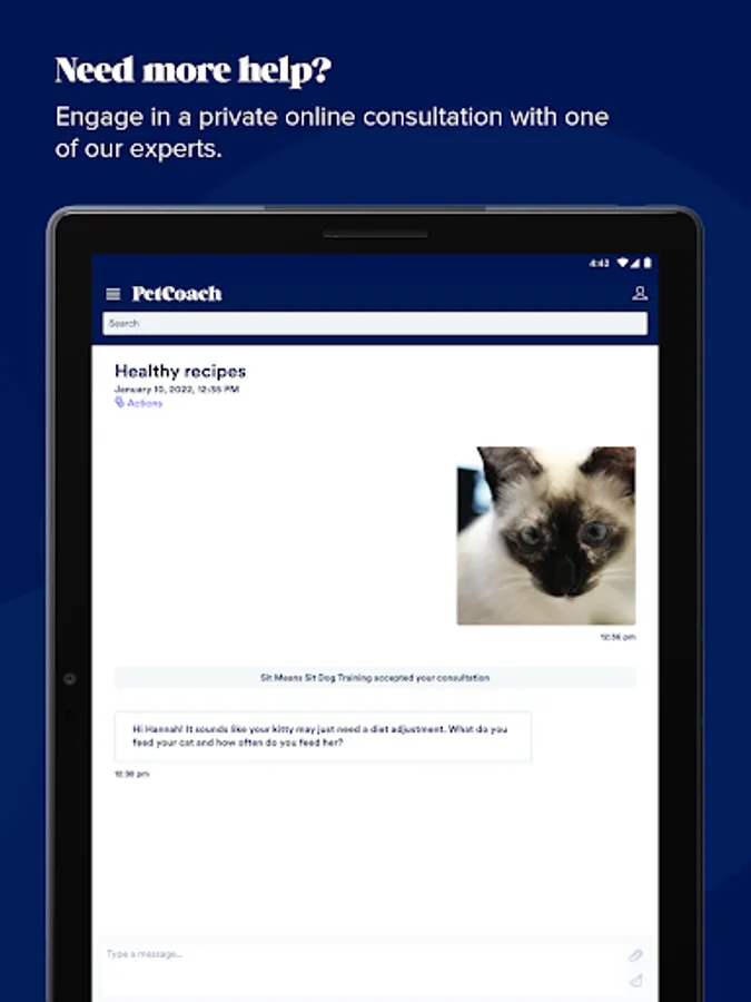 - Your trusted source of information: Additionally, PetCoach contains hundreds of vet-authored articles about pet health, behavior, nutrition and care. Learn why your dog eats grass, what your kitten’s meowing means, or which common foods are poisonous to your pet.