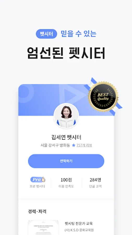 - Practical training: Completion of pet sitter theory and practice training supervised by trainer Lee Chan-jong of TV Animal Farm