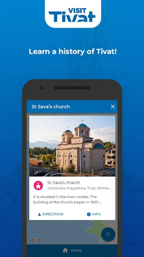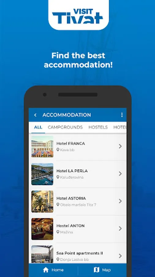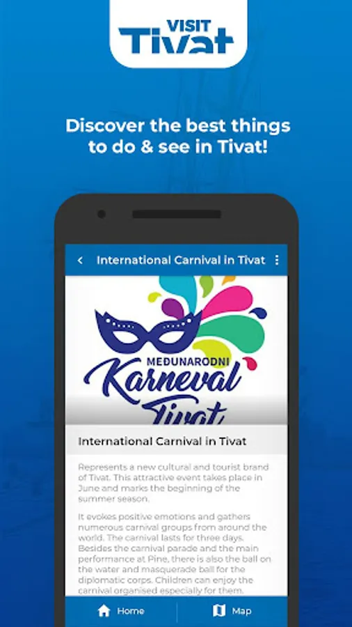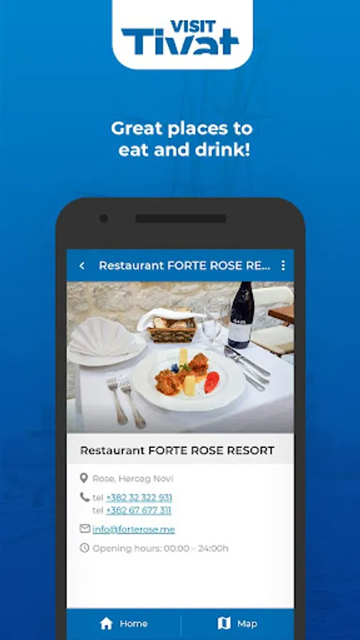 Visit TIVAT mobile guide also has a integrated map function to enable you visualise your itinerary, get directions and see where places of interest are located. In essence, this is Tivats' guide on your mobile phone.