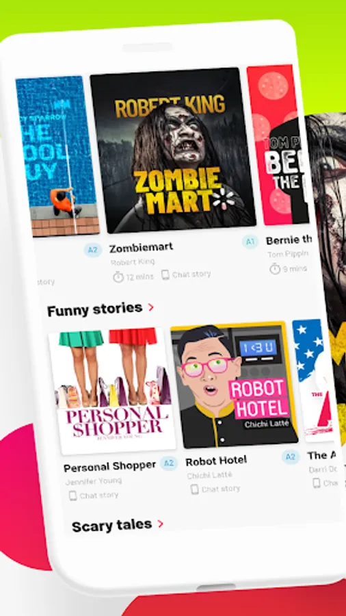 "Really good immersive stories with very dynamic characters. You learn English in a fast and practical way. Sometimes I don’t even realise just how much I have learned while reading. 1000 stars!" — Eduardo