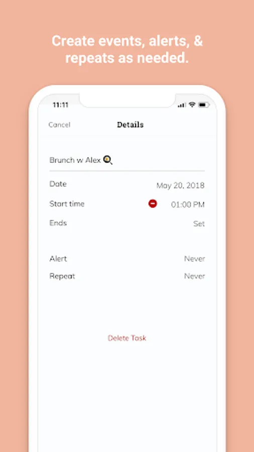 - Set alerts, events, and repeated tasks with the simple calendar feature