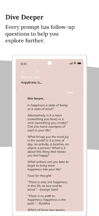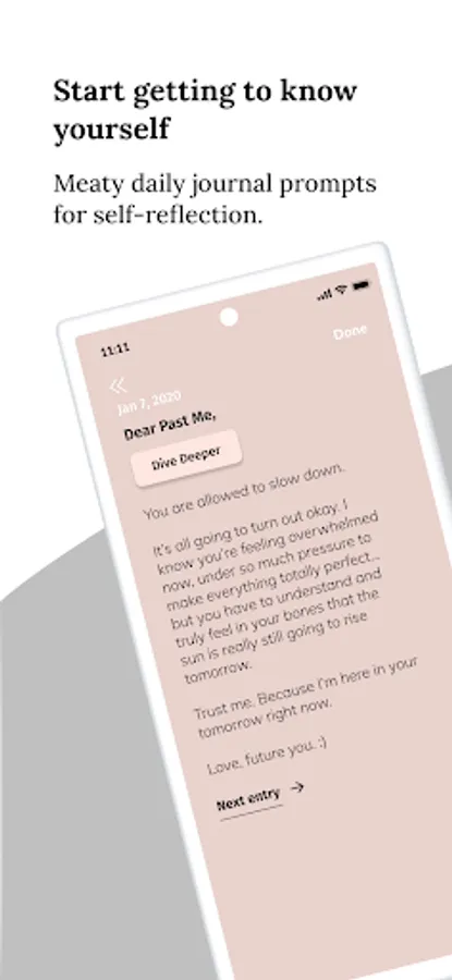 Our daily journal and diary app offers 190+ journal prompts to kick-start your writing and reflection journey. With daily reminders to ensure you stay on track, maintaining a consistent journal and diary habit has never been easier. Every journal and diary entry you make in this app is a step towards helping you combine reflection, introspection, and manifestation into a self care habit.