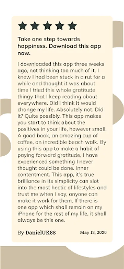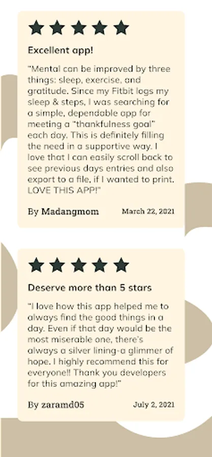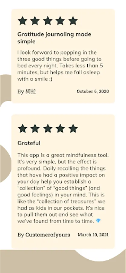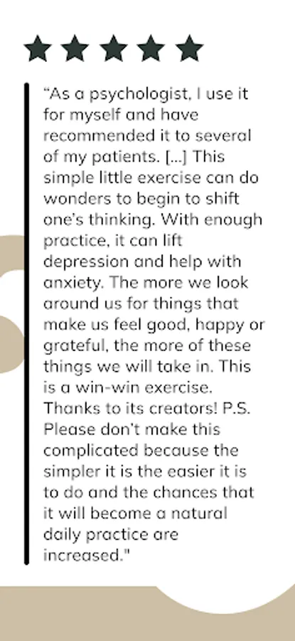 Thank you for choosing this free app of journey of gratitude, journaling, and self-discovery. We believe that our daily gratitude journal will affirm the joy in your everyday life, feeling grateful and thankful, through guided self-care journaling.