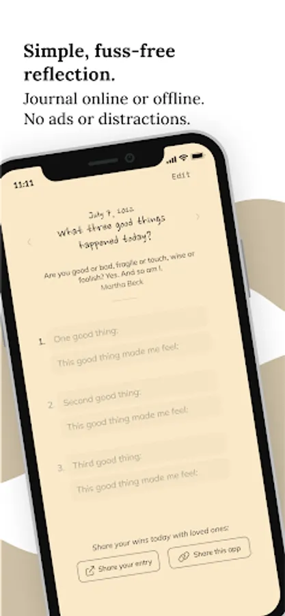 Engage with a graditude journal that prioritizes your mental and emotional wellness with a free journaling app for you glow up the positive aspects of your life, helping you feel grateful and thankful.