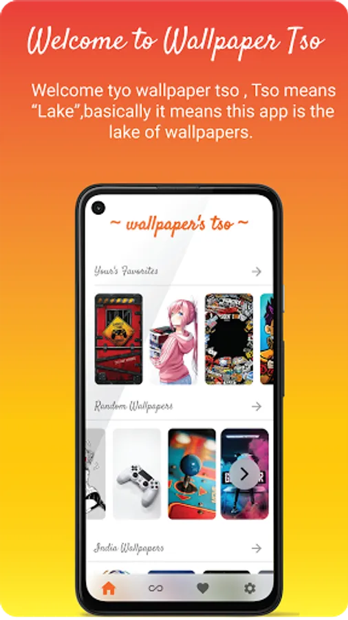 In app Wallpaper Tso - you are thinks what is this Tso or TSO mean its not an abbreviation but its a single word "Tso" means lake And this app is a lake of wallpapers of different tastes, quality, category, that's why we name it