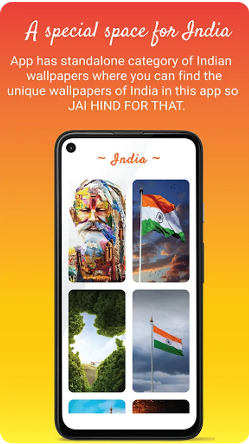 * In this app there is a special category that is "INDIA" yes this app has standalone category of Indian wallpapers where you can find the vibrant and unique wallpapers of India in this app so JAI HIND FOR THAT.