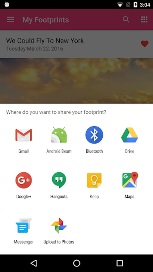 Bookmark your favorite ones to easily find them. Search your footprints by name, notes and places. It's your personal collection, but you can also share your footprints with friends and family on Twitter, Facebook and Instagram.