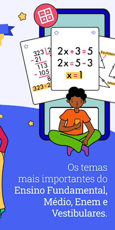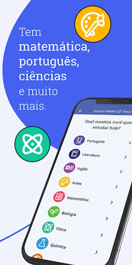 Reinforcement is an educational reinforcement application for all subjects that make up the Brazilian curriculum: Mathematics, Portuguese, Science, Literary Education, English, Arts, Writing, Science, Biology, Chemistry, Physics, Geography, History, Sociology and Philosophy, directly on your cell phone. All prepared by specialist teachers in Elementary Education, High School, Enem and other entrance exams.