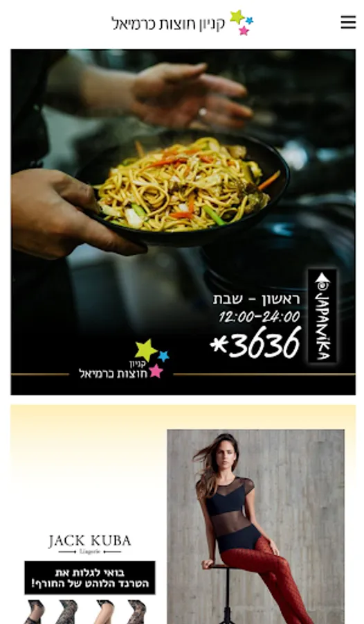 In the Carmiel Mall app, you will find a variety of offers and benefits for the mall stores, combined with invitations to quality content events and the entire family. A variety of activities for children of all ages: plays, shows, workshops, gymboree, inflatable games, games, and other attractions and cultural events according to the season of the year.