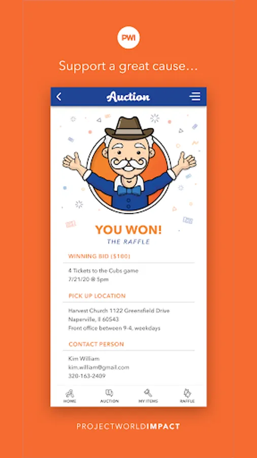PWI Auction is a nonprofit silent auction app that allows you to purchase raffle tickets, bid on auction items, and more for a good cause all from your phone!