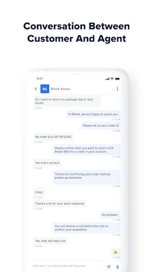 Instead of typing the same lengthy responses for similar queries, make efficient use of canned responses. Just type ‘/’ followed by a shortcode; for example, on typing ‘ /Welcome, you can select the required response template from the canned responses shown.