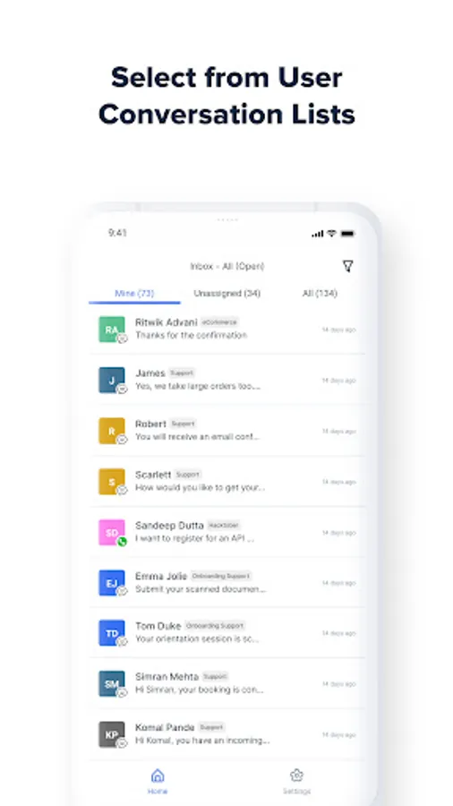 For every incoming conversation, receive real-time notifications to avoid the need for continuously checking the app.