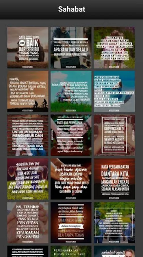 Aplikasi ini berisi kumpulan gambar kata bijak tentang persahabatan untuk teman dan kawan dekat, didesain dengan tipografi yang cantik dan elegan.