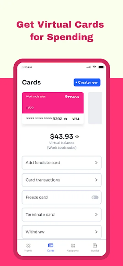 With Geegpay, you can automate invoicing and get paid faster by clients globally, while saving costs on fees with Geegpay global accounts and cards.