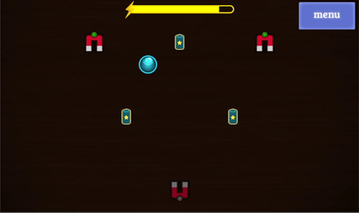 Magnetic game that has the player get all the batteries in all levels while avoiding dangers such as laser barriers, holes and black holes.