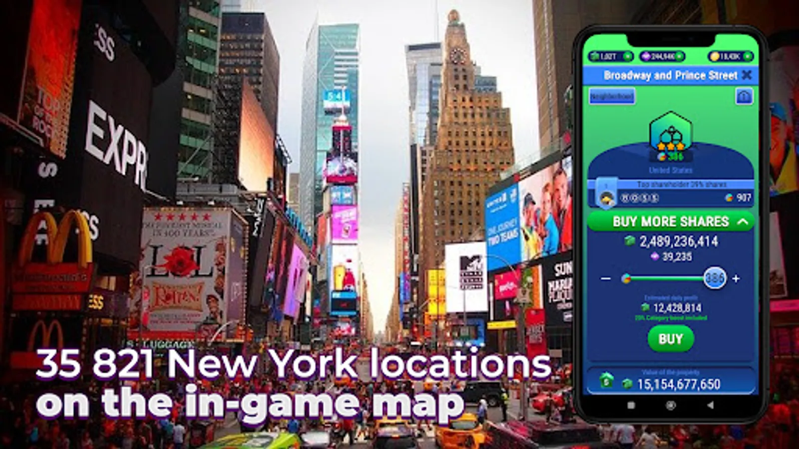 Business trips, vacations, and outings can be a great opportunity to discover new, undiscovered properties. Choose the best-earning ones that will be visited by large crowds. Searching for properties takes only a moment, and your empire is always at your fingertips on your phone. The game won't distract you from other matters - you launch the game, buy, negotiate, and finalize transactions. You can always buy as many shares in properties as you can afford.