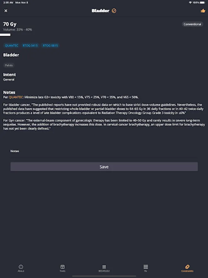 BED/EQD2 calculator and constraints reference for radiation oncologists