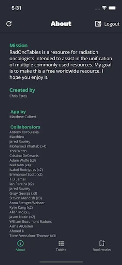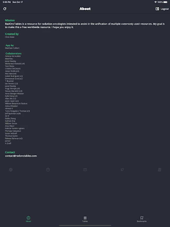Rad Onc Tables is an application designed for quick reference of research in the field of radiation oncology.