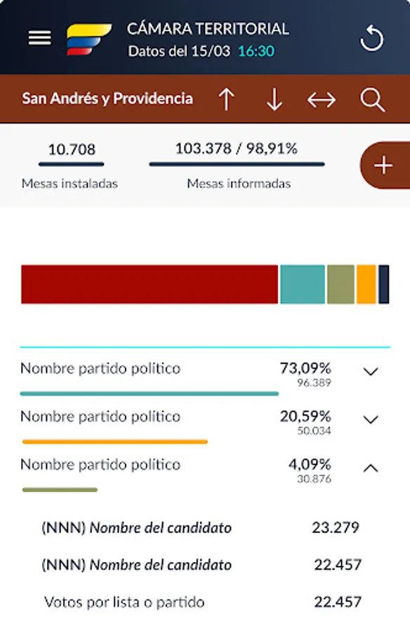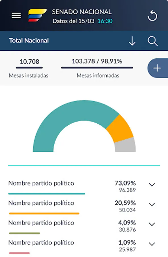 The "Colombia Elections 2022" application is the official and free tool that the National Registry of Civil Status of Colombia has provided for citizens to consult the results of the Precount (unofficial preliminary results and without binding force), of the legislative elections, which will be held on March 13, 2022.