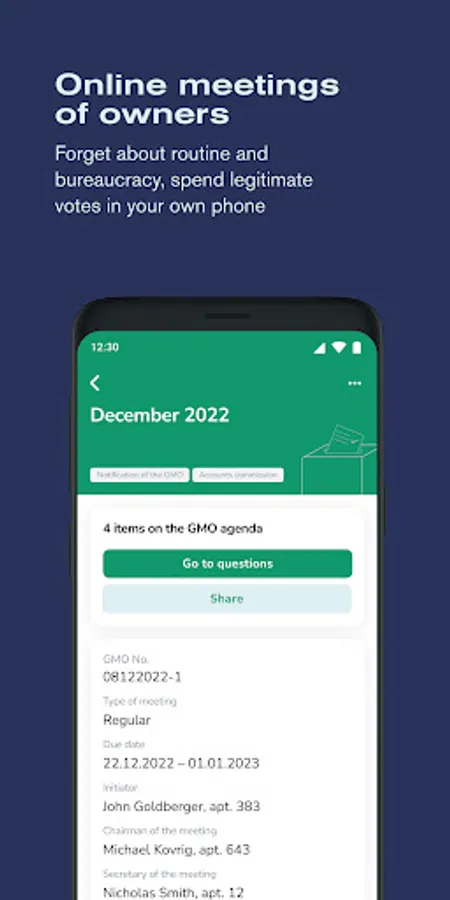 We'll hold a General Meeting of Owners, legalize agendas according to the existing standards and simplify quorum forming. Butler will help you to implement the ideas for improving public spaces of apartment buildings. Connect ready-made services – car and bicycle parking lots, CCTV, furniture for the entrance of the house etc. or put forward your own ideas. Make your life in the apartment building comfortable.