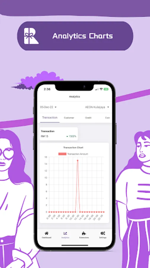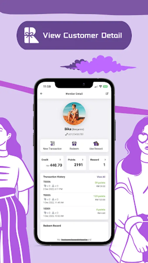 Data Analytic - Data of transactions and members will be sort and calculated. This helps to check daily transaction and active members.