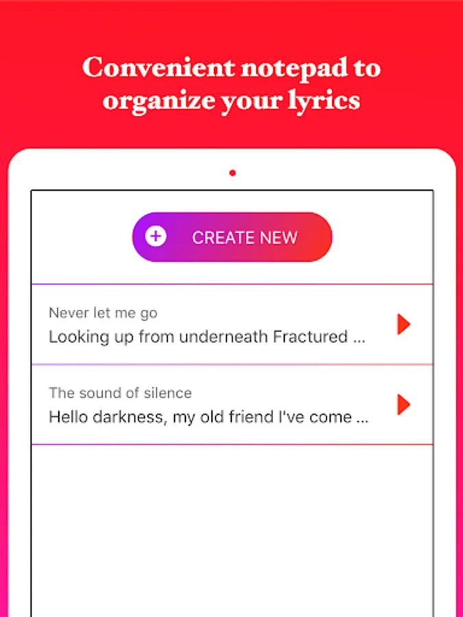 - Notepad to save your songs, speeches, or poems