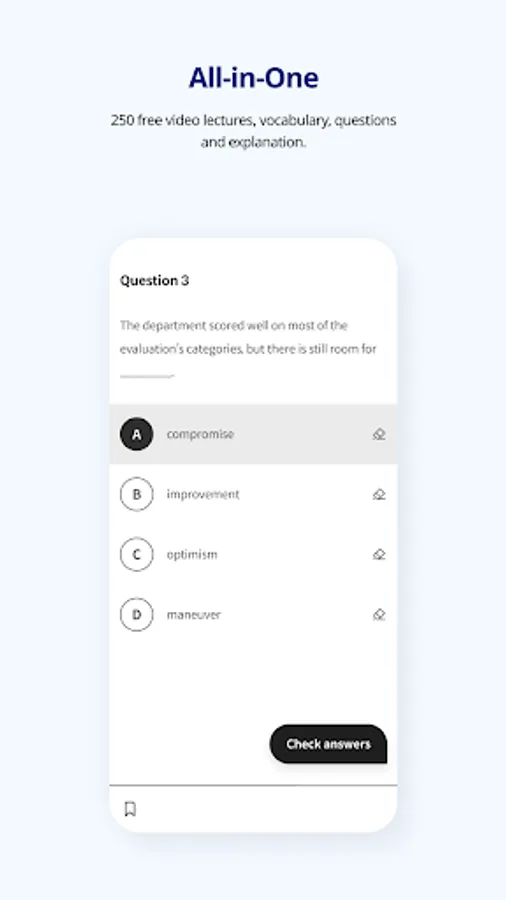 Santa provides an All-in-one service in which you can study everything about TOEIC all at once, including TOEIC RC/LC practice questions, TOEIC video lectures, TOEIC vocabs, and TOEIC sample vocabularies.