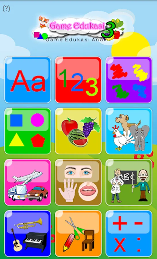 Game Child Education is a game with a variety of games. Games that teach your child recognize objects or things around us. Among other things, recognize various animals, recognize numbers, recognize letters of the alphabet, recognize shapes, recognize colors, fruits know, know your body, know the means of transportation, get to know the objects around, get to know the profession and recognize musical instruments.