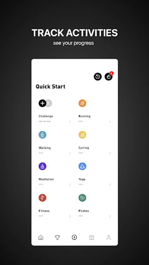 • Running, walking, cycling, yoga, fitness, pilates or meditation. You can record seven different types of activities.