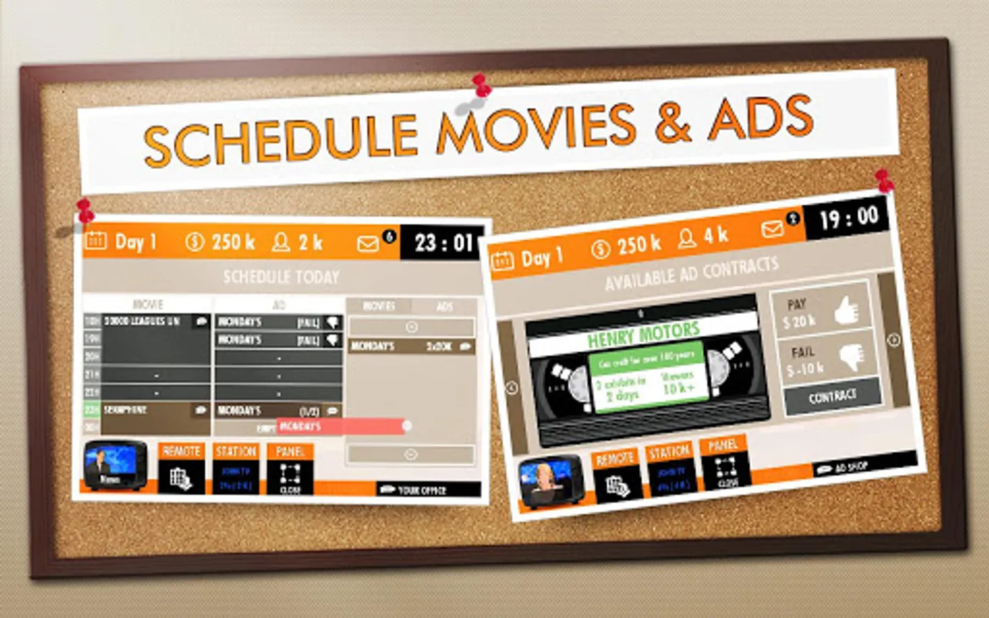 It takes a while to learn how to play and master - the ad contracts will get you money to buy better movies, and with better movies you can get a higher audience. It's definitely NOT an easy task, requires a lot of strategy, time and dedication... are you the next television tycoon?