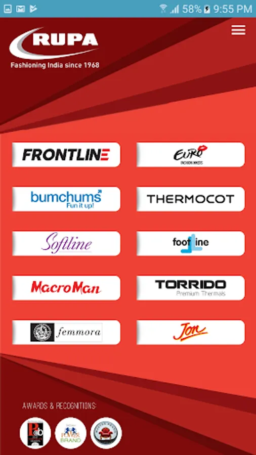 Rupa & Company Ltd. is one of the leading Knitwear Manufacturing Companies in India with an enviable portfolio comprising of popular brands like Frontline, Softline, Euro, Bumchums, Torrido, Thermocot, Footline and Jon, covering an entire range of knitted garments from Inner Wear to Casual Wear, Sleep Wear to Thermal Wear.