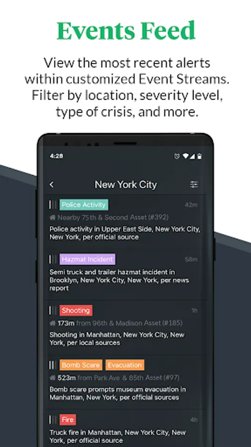 Keep up-to-date with events that are relevant to you with customized filters. Narrow your focus by location, event severity level, type of crisis, and more.