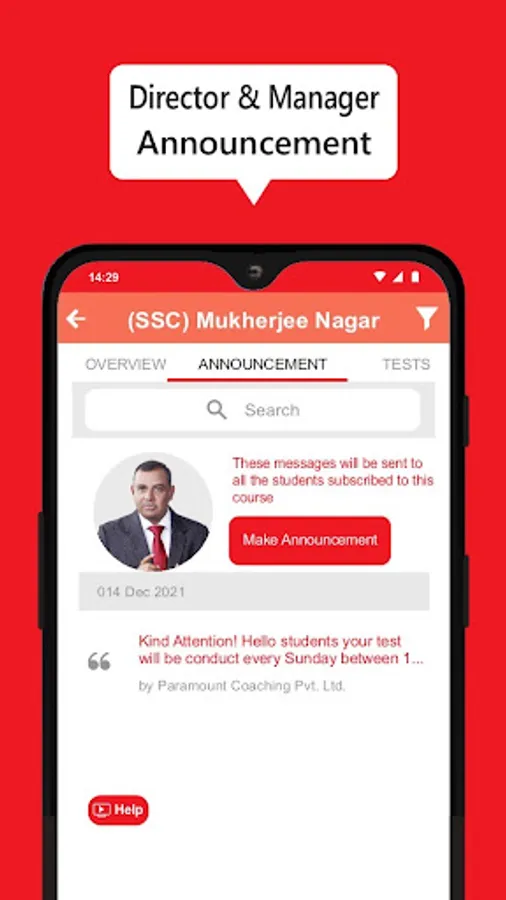 - Get announcements around exam dates/special classes/ special events etc.