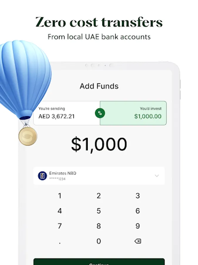 Investing has never been easier. With Sarwa, you can sign up in a few minutes and transfer with zero cost from a local U.A.E AED account. There are no lock-ins and no entry or exit fees.