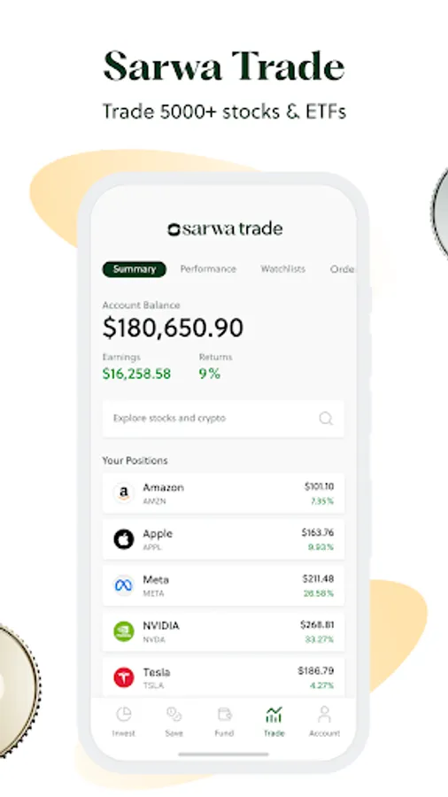 Sarwa is an all-in-one investment and personal finance app. Whether you prefer a hands-off investment, real-time trading of stocks, ETFs, and cryptocurrencies, or you want to save and grow your cash by 3%, Sarwa is your one-stop shop. With Sarwa Invest, Trade, Crypto, and Save, all your investments are covered.