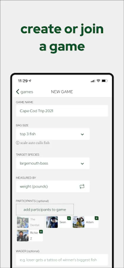 bringing fishing challenges to the 21st century, scale was developed by a UX designer who was tired of trying to manage impromtu "biggest bag" challenges with real-time updates.
