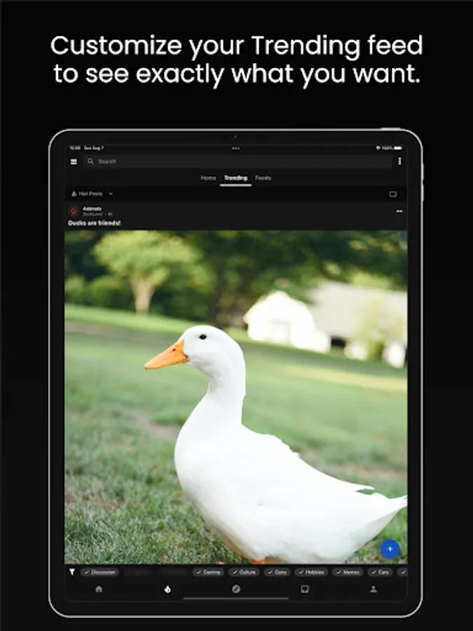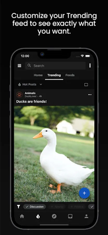 Join communities to build your personal Home feed, or visit the customizable Trending feed, where you can hide communities and entire topics.