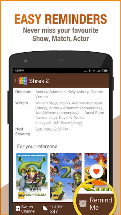 Intelligent reminders and personalization, making your phone remind you on your Favorite shows on TV, movies on TV, Songs on TV & more.