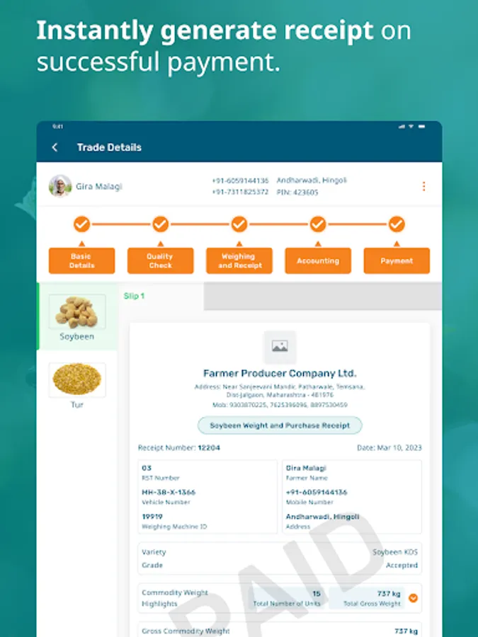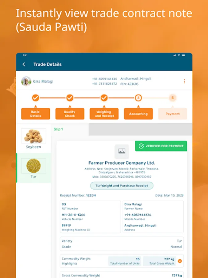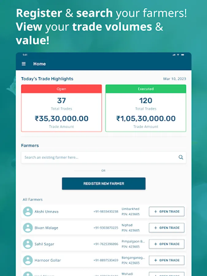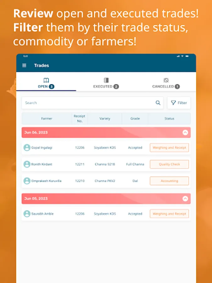 Using SetuTrade, you can easily record incoming commodity trades for dedicated markets for bulk buyers and retail consumers.