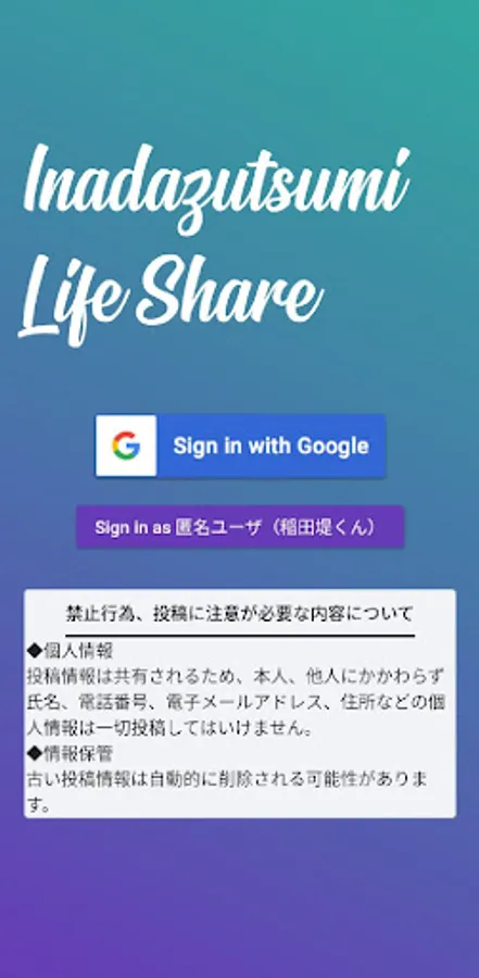 It can be used by Google login or anonymous user (Inadazutsumi-kun).