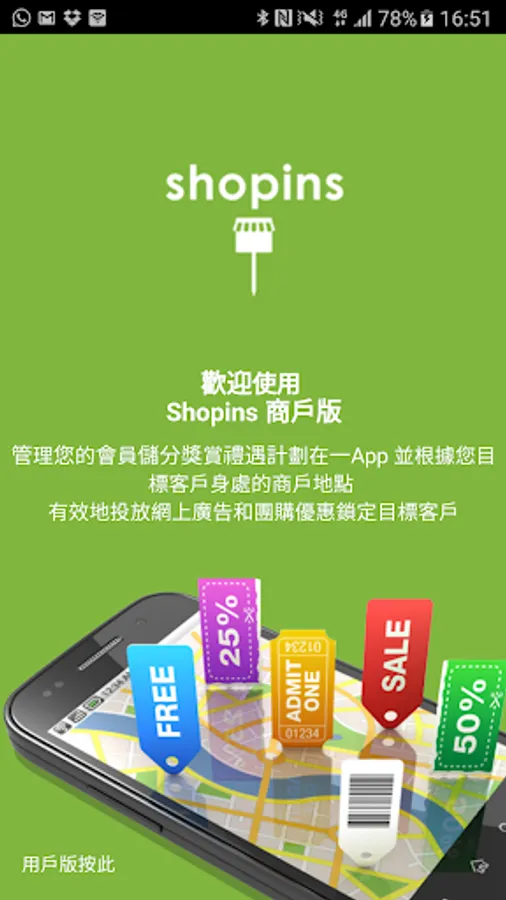 Shopins is merchant's one-stop loyalty CRM and marketing mobile app to keep loyal customers and draw new customers and business. This app is solely for merchant users to manage their respective loyalty programs and offers listed on Shopins.