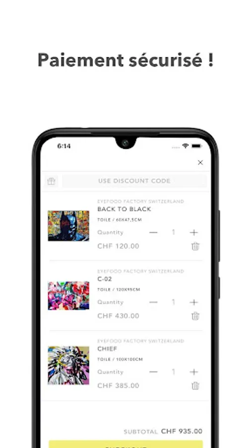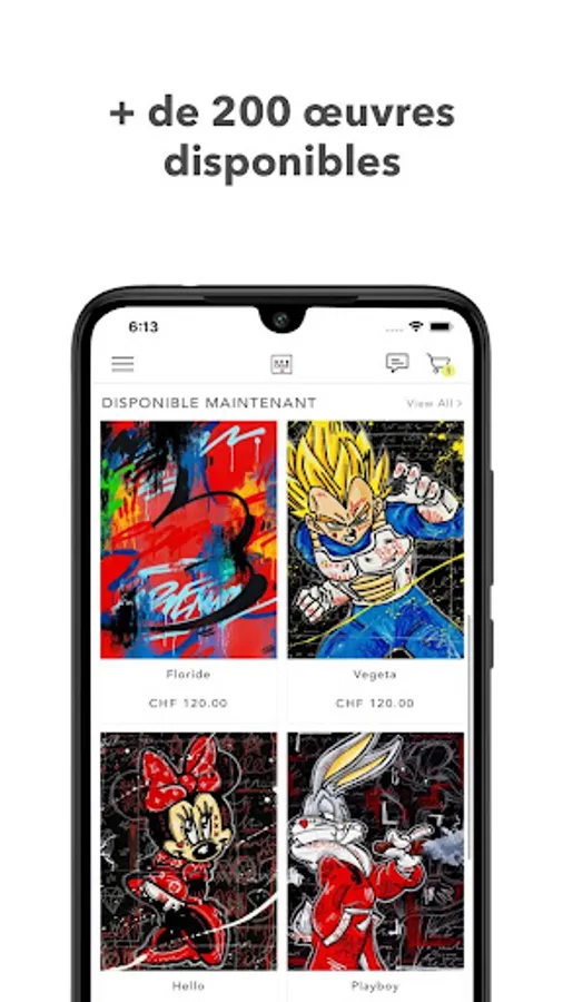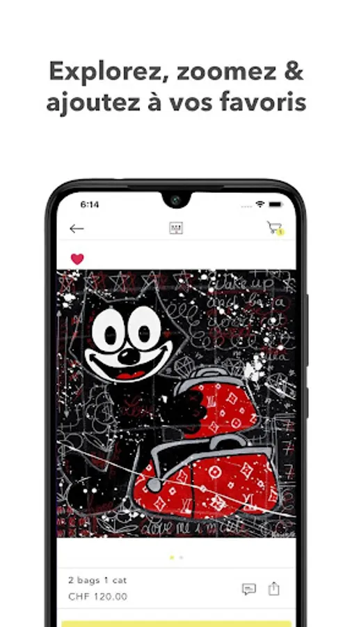 Designed for intuitive tactile navigation, the official Eyefood Factory Switzerland application allows you to discover the Street / Pop Art universe of our artists. Browse the catalog of their works with one hand, receive priority alerts when new releases are online, create your favorites list and buy from anywhere in complete safety.