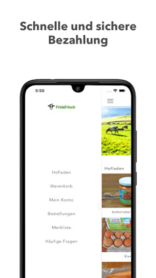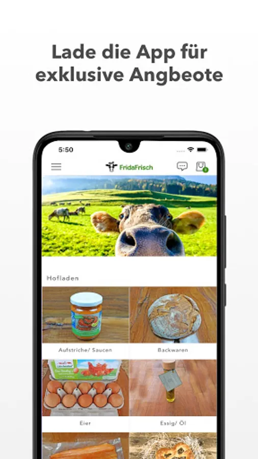 Our online farm shop now covers a wide variety of products so that you can easily replace your weekly shopping at conventional shops. And the best thing is: our range continues to grow! With our FridaFrisch app you can carry the regional online farm shop right in your pocket. Shopping has never been so quick and easy!