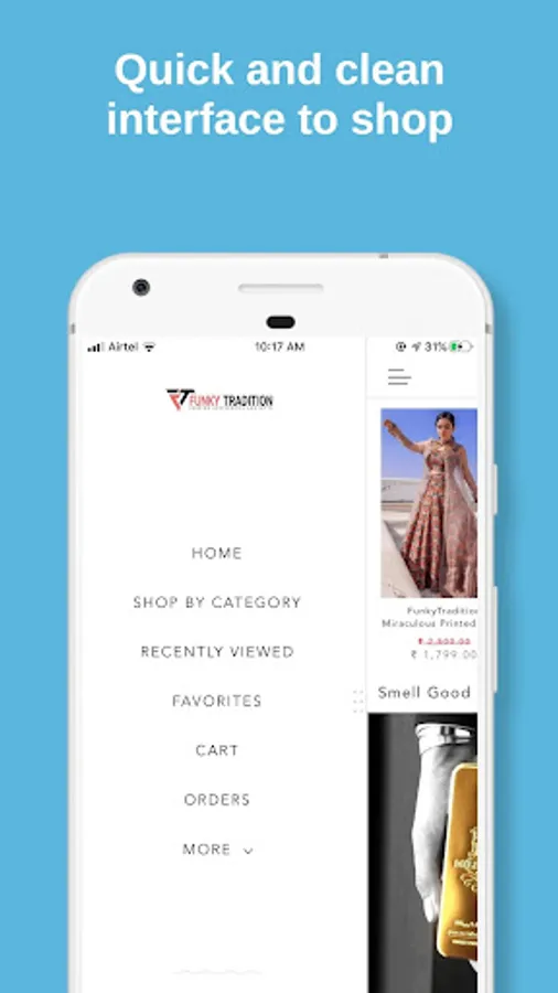FunkyTradition online shopping app allows you to choose from a wide range of following products Divided into 3 Main Categories.